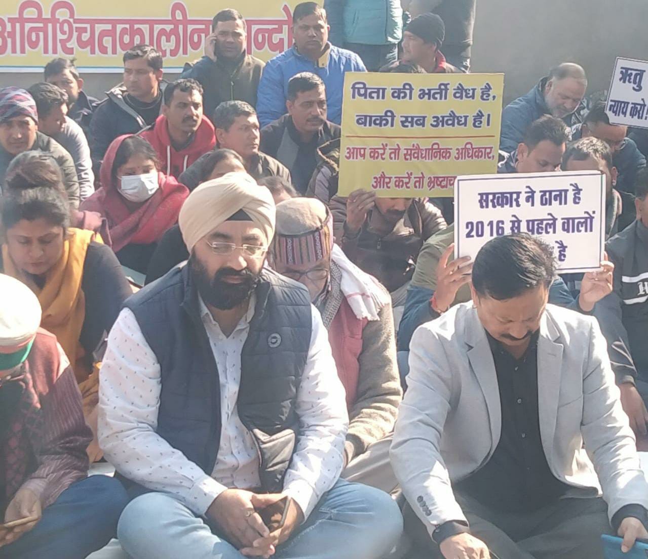 देहरादून: विधानसभा से बर्खास्त कार्मिकों को कांग्रेस का पूर्ण रूप से समर्थन मिल रहा है, पहले पूर्व मुख्यमंत्री हरीश रावत व पूर्व नेता प्रतिपक्ष प्रीतम सिंह के बाद आज कांग्रेस के प्रदेश अध्यक्ष करन माहरा ने भी धरना स्थल पहुंचकर बर्खास्त कार्मिकों को कांग्रेस की ओर से पूर्ण समर्थन दिया। इस दौरान द्वाराहाट से कांग्रेस के विधायक मदन बिष्ट सहित कई कांग्रेसी नेताओं ने बर्खास्त कार्मिकों के साथ धरना स्थल पर बैठकर समर्थन दिया।