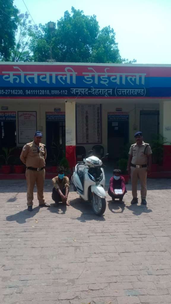 घटना के सम्बन्ध मे उच्चाधिकारीगणो को अवगत कराते हुए वरिष्ठ पुलिस अधीक्षक देहरादून द्वारा दिये गए निर्देशों पर कोतवाली डोईवाला पर पुलिस टीम गठित की गयी, गठित टीम द्वारा घटनास्थल व आसपास के स्थानो पर CCTV कैमरो का अवलोकन कर उच्चास्तरीय सुरागरसी-पतारसी कर सूचना तन्त्र को सक्रिय किया गया । घटना के अनावरण हेतु पुलिस टीम द्वारा की गई त्वरित एवं प्रभावी कार्यवाही के फलस्वरूप मुखबिर की सूचना के आधार पर पुलिस टीम द्वारा दिनांक 10/05/2024 को काली माता मन्दिर के पास, लालतप्पड पर चैकिंग के दौरान घटना को अंजाम देने वाले दोनों अभियुक्तों 01-मनीष त्यागी पुत्र श्री लोकेश त्यागी तथा 02- भरत पुत्र भीमाराम के कब्जे से घटना मे लूटी गयी स्कूटी संख्या- UK07VV- 8066 सफेद रंग के साथ गिरफ्तार किया गया, अभियुक्तों की तलाशी लेने पर उनके पास से घटना में लूटी गई चैन, एक आधार कार्ड, रूपये 2000/- नगद बरामद हुए। दोनों अभियुक्तों को समय से मा0 न्यायालय के समक्ष पेश किया जाएगा।