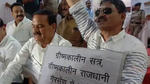 उत्तराखंड विधानसभा का बजट सत्र आज से शुरू हो गया है। वहीं इस बार के बजट सत्र हंगामेदार रहने के आसार हैं। वहीं कांग्रेस पार्टी सदन के पहले दिन ही आक्रामक दिखी। बजट सत्र के दौरान कांग्रेस ने भाजपा सरकार पर जमकर हमला बोला। कांग्रेसियों ने मांग की है कि ग्रीष्मकालीन राजधानी गैरसैंण में ही ग्रीष्मकालीन सत्र आयोजित होना चाहिए। नेता प्रतिपक्ष यशपाल आर्य सहित सभी कांग्रेसी धरने पर बैठ गए।