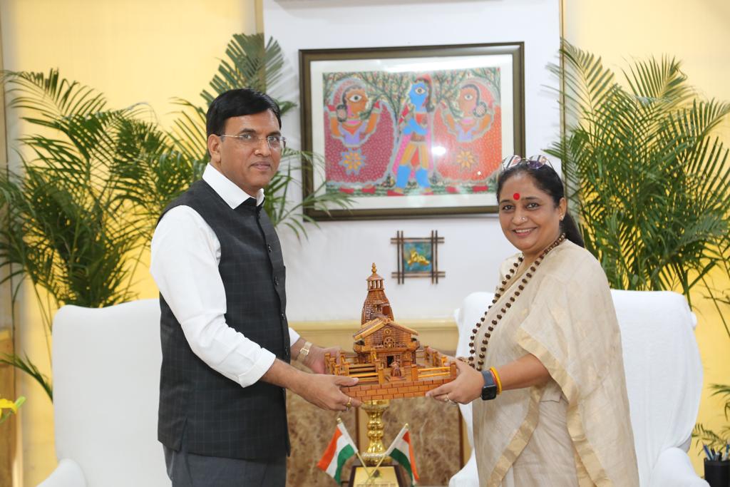 उत्तराखंड विधानसभा अध्यक्ष ऋतु खंडूडी भूषण ने बीते दिन अपने दिल्ली दौरे के दौरान केंद्रीय स्वास्थ्य एवं परिवार कल्याण मंत्री डॉ. मनसुख मंडाविया से शिष्टाचार भेंट की। इस अवसर पर विधानसभा अध्यक्ष ने केंद्रीय स्वास्थ्य मंत्री को केदारनाथ मन्दिर की प्रतिकृति भेंट की एवं राज्य से जुड़े स्वास्थ्य सम्बंधित तमाम विषयों पर चर्चा करने के साथ ही मदद का आग्रह किया।